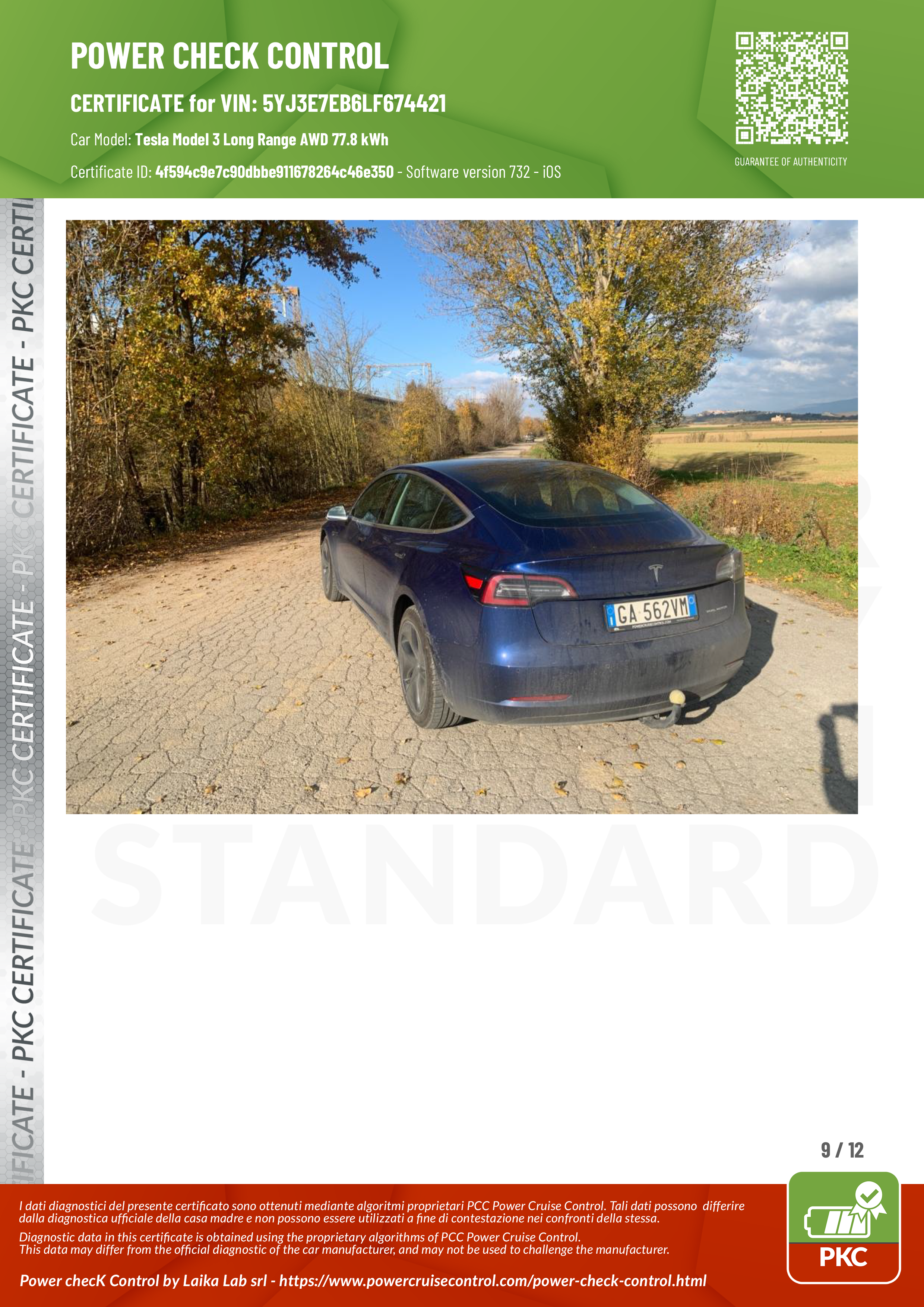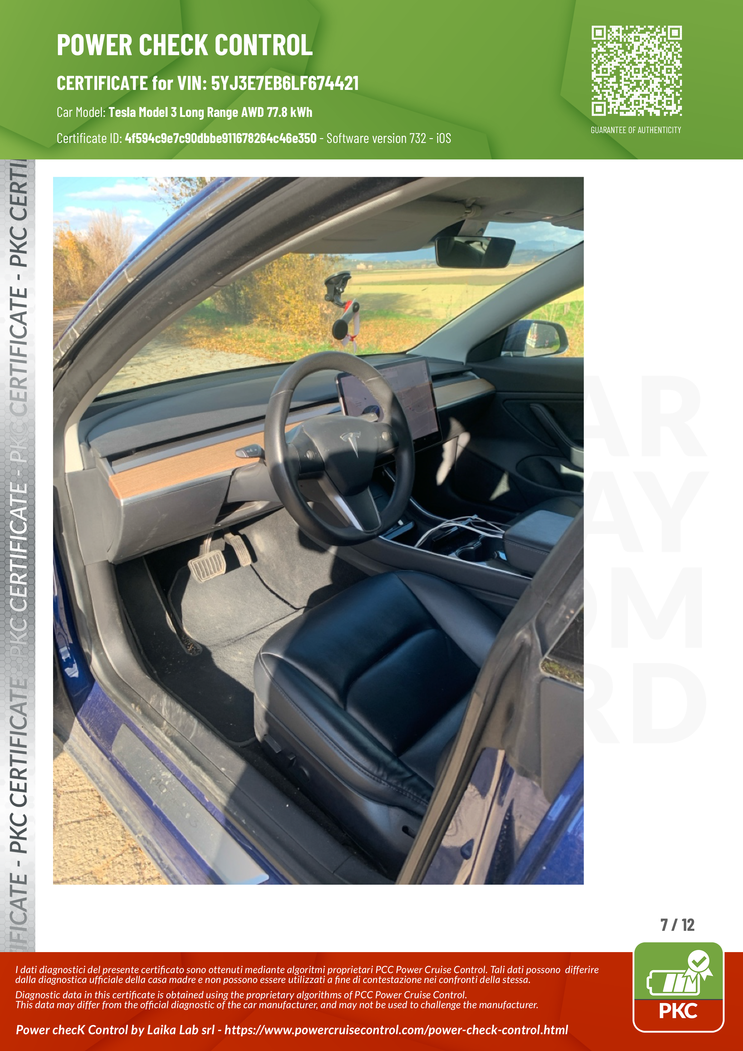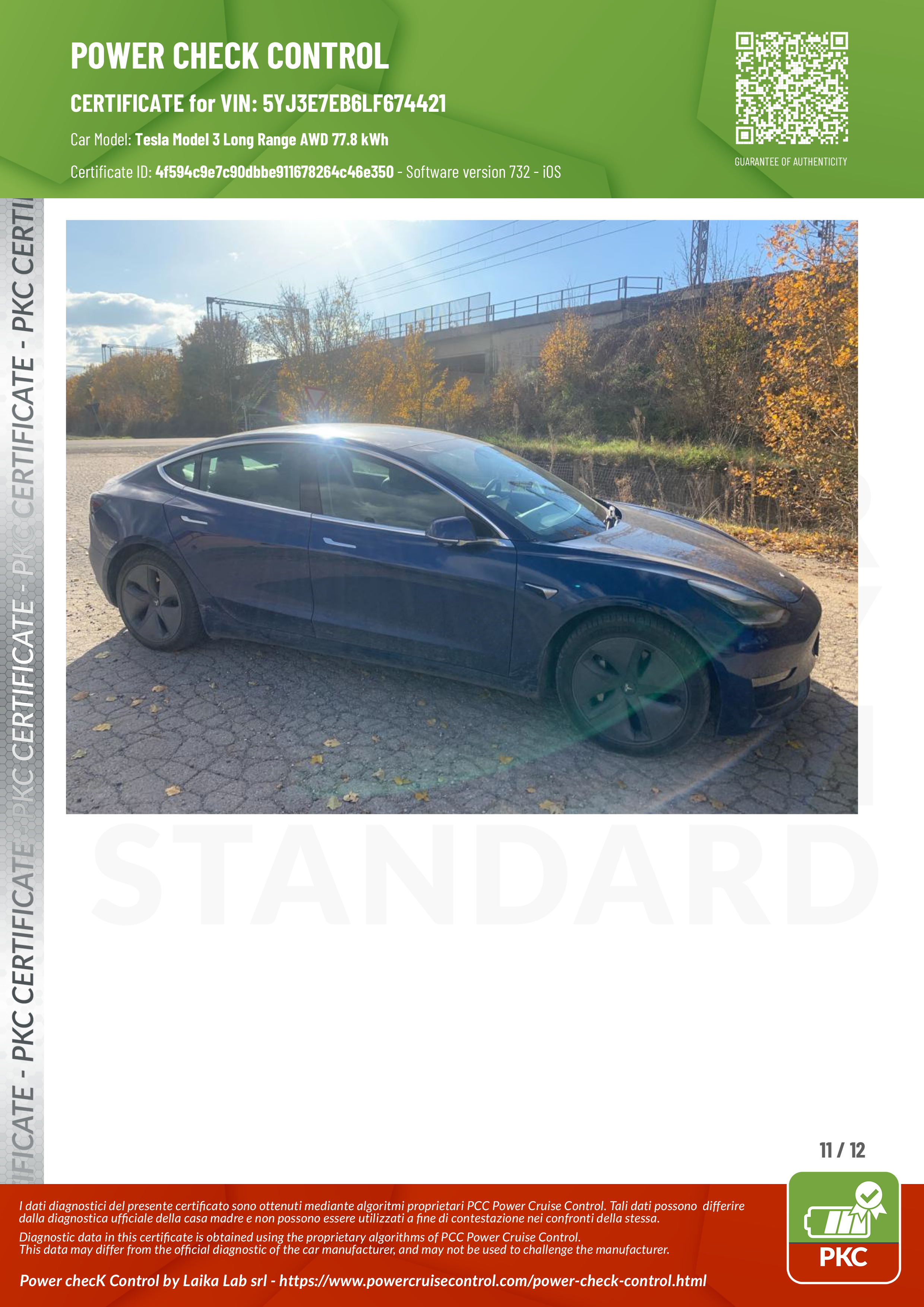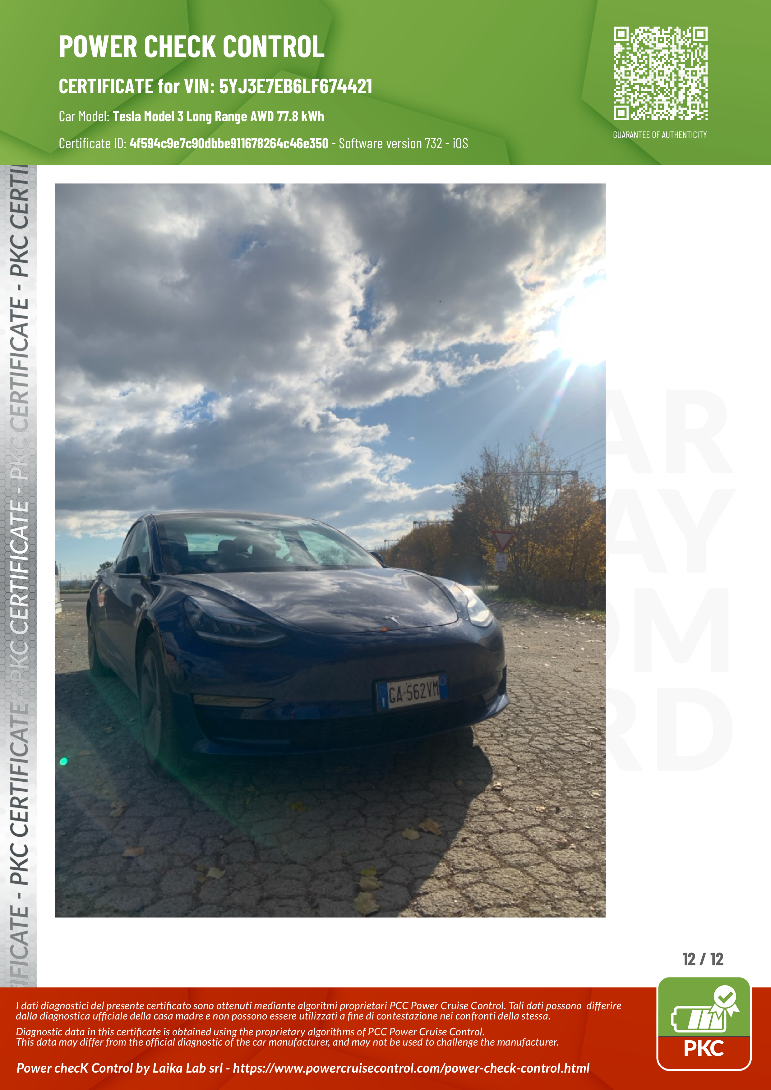 PKC | TESLA MODEL 3 (Certificazione Stato Batteria)