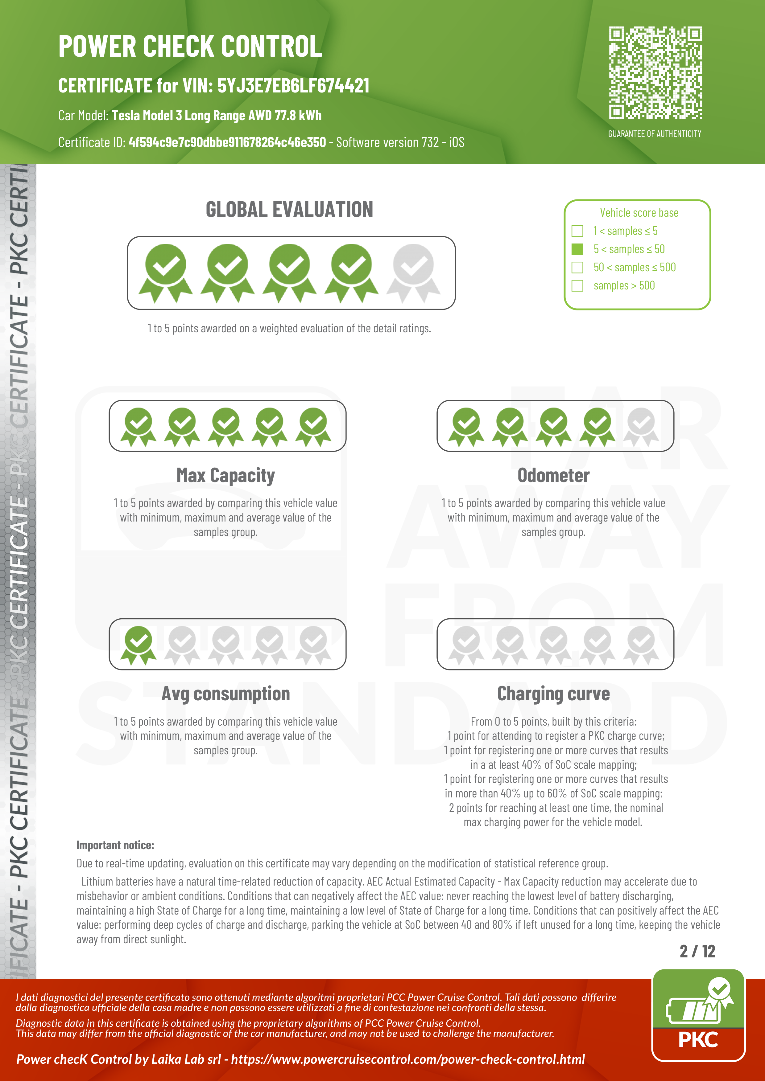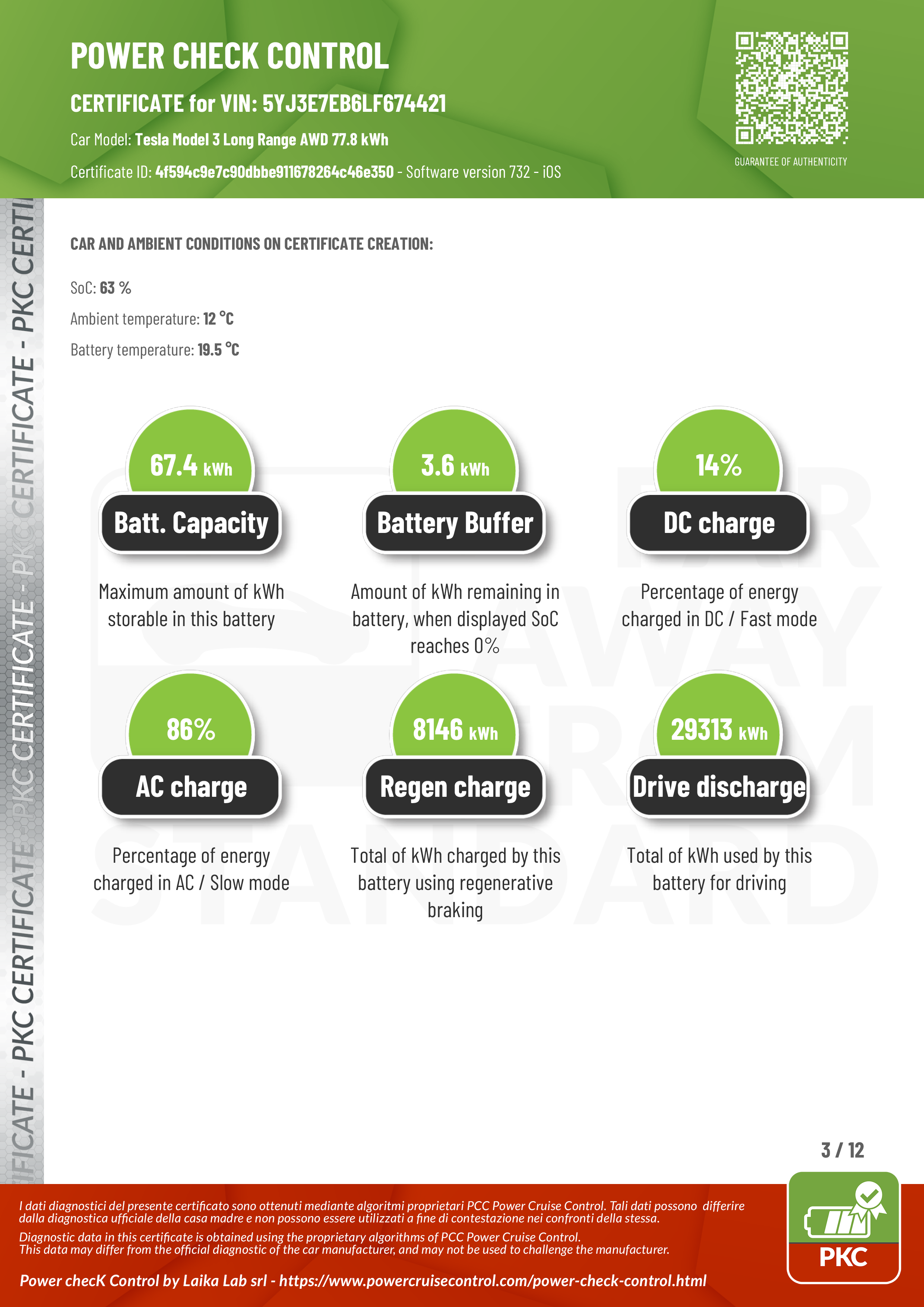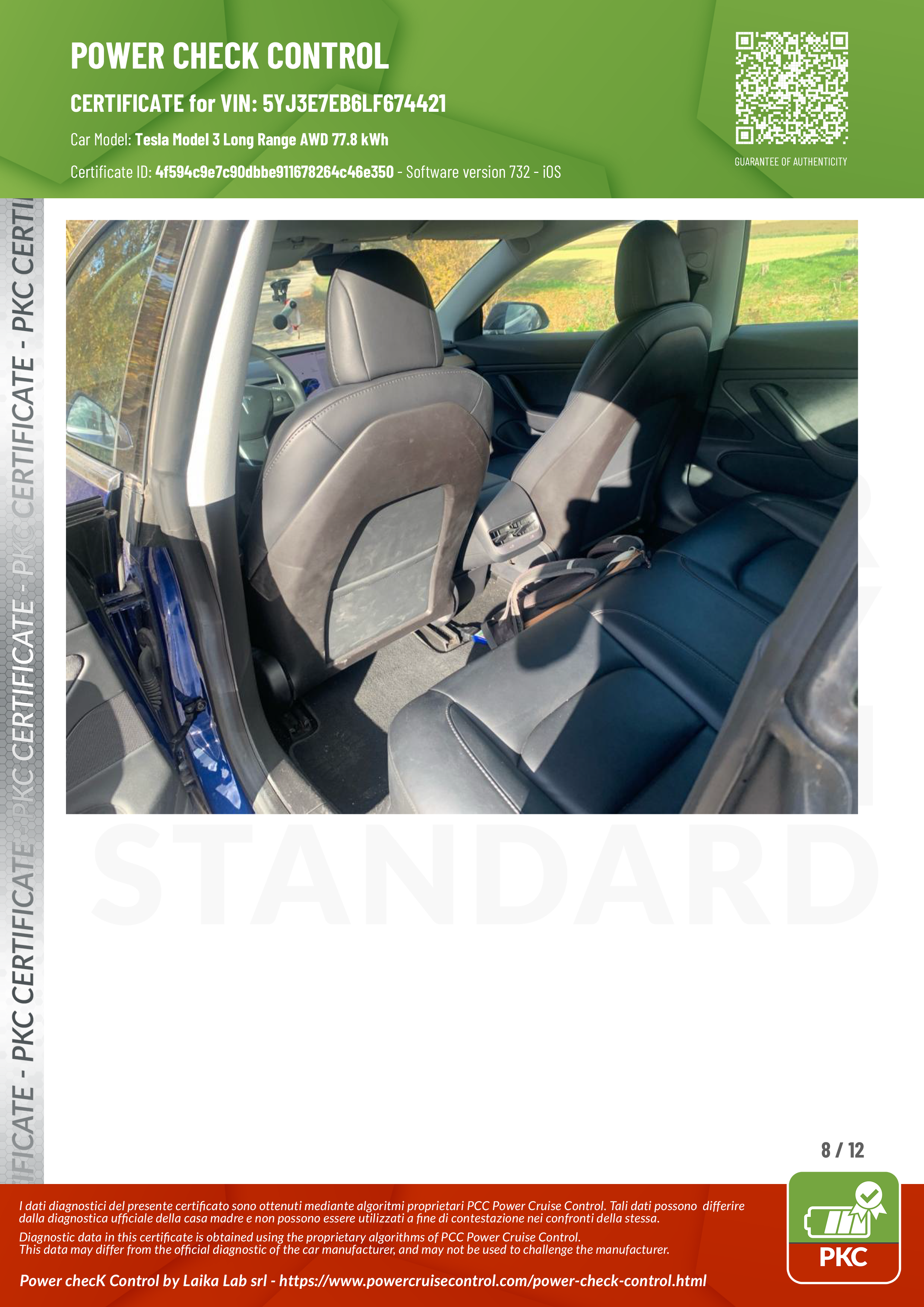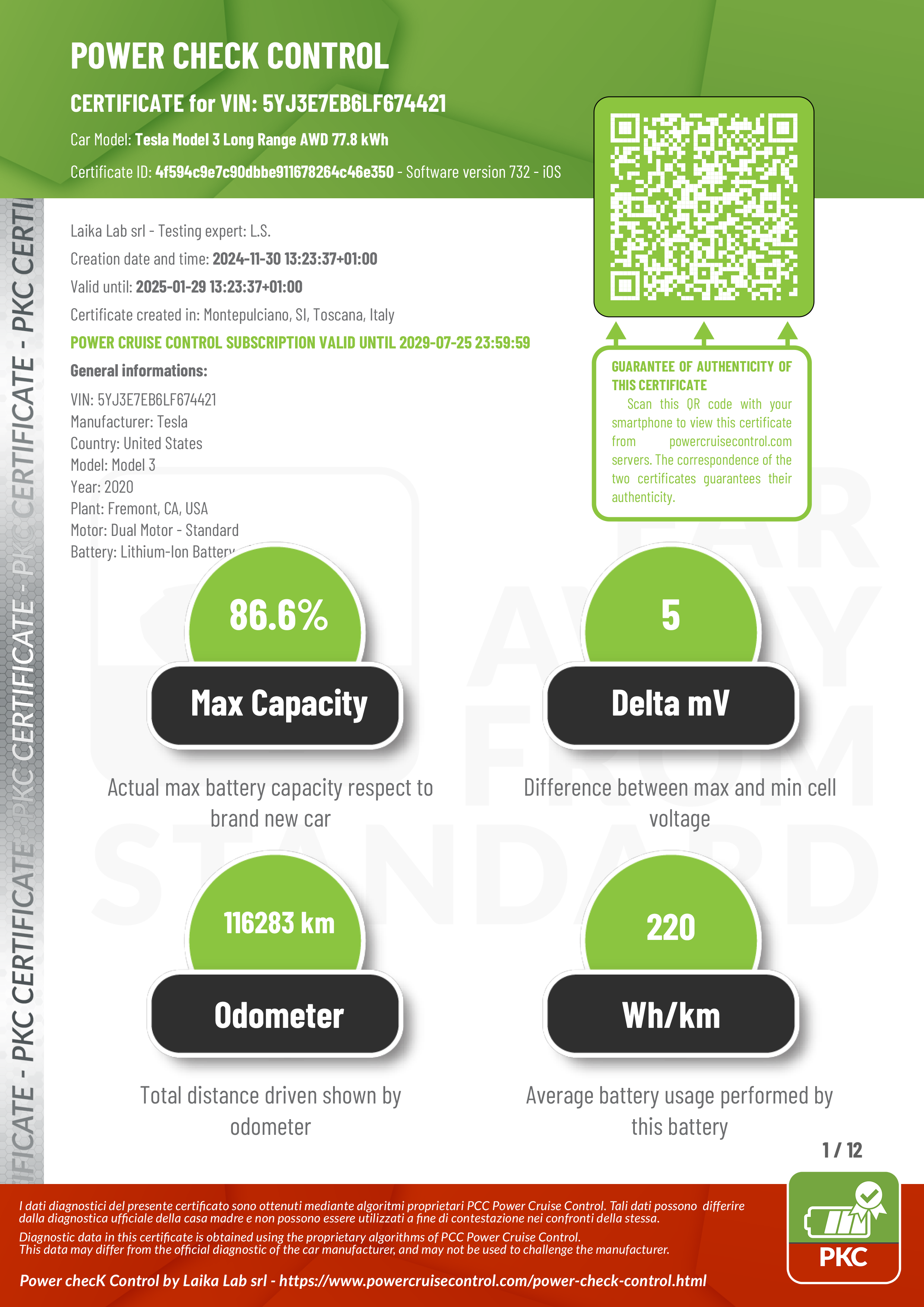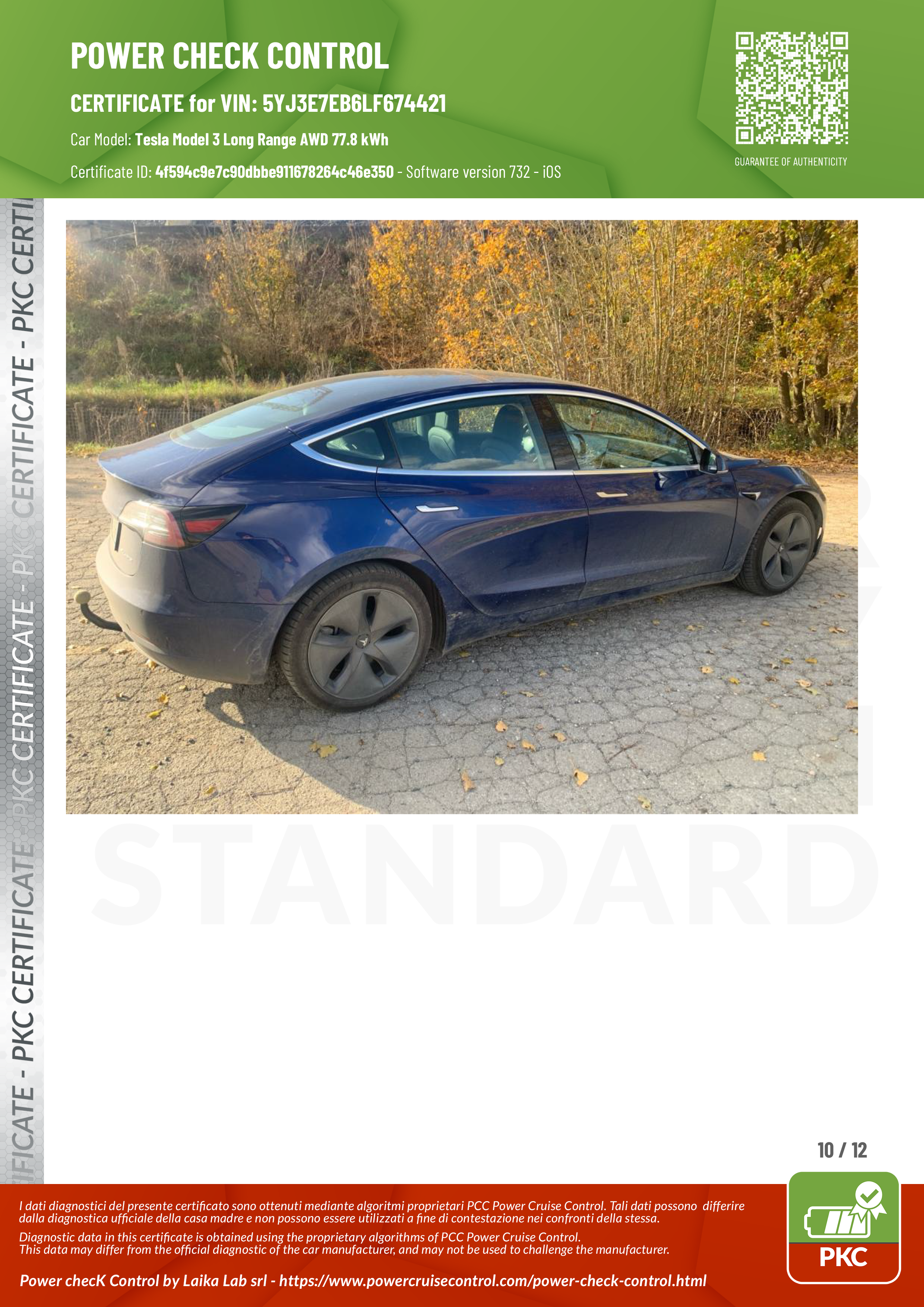 PKC | TESLA MODEL 3 (Certificazione Stato Batteria)